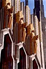 The Denver Botanic Gardens[2] has a terracotta frieze depicting, among things, two hunters with shotguns shooting at a buffalo. This frieze originally was part of the Midland Savings Bank but was removed when the bank was renovated in 1964 and moved to the botanical gardens.