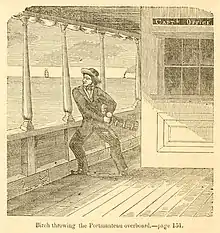 When Robert Birch was 18 years old, he was alleged by James Henry Tevis of being involved in the torture-murder of Colonel George Davenport at his home on July 4, 1845.[3] Robert Birch was one of several members later identified by Edward Bonney who had infiltrated the gang as a bogus counterfeiter. Ironically, three years earlier, Bonney had been arrested and charged with counterfeiting in Indiana but escaped before his conviction. Birch was soon apprehended, in part due to information from Bonney, and he soon agreed to testify against the others in exchange for a reduced sentence. Granville Young and brothers John and Aaron Long were later executed for the murder. After several court delays, Robert Birch broke out of jail, through outside help or bribery, in Knoxville, Illinois, March 22, 1847.