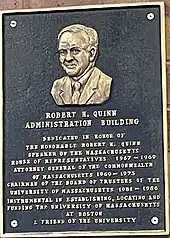 Quinn was a member of the Massachusetts House of Representatives from 1957 to 1969 and the speaker of that body from 1967 to 1969. During his tenure in the house, he played a role in the founding of the University of Massachusetts Boston by co-sponsoring the legislation that established the university in conjunction with Massachusetts Senate Majority Leader Maurice A. Donahue.[2][3]
