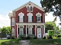 The Robert Henne House is a historic building located in the West End of Davenport, Iowa, United States. This Greek Revival style residence was built for Robert and Henrietta Henne in 1874. He operated the cigar stand in the post office. She continued the business after his death in 1885. The house followed a popular 19th-century style in Davenport that has some unique features.[2] The gable-end oculus is located on the side of the house as opposed to the front. On the front are a pair of round-arch windows. The windows that face the front of the house feature keystone window heads that drop to small molded corner blocks and are flush to the brick. Molded panels are found on the porch frieze and on the soffits and reveals on the main entrance. The house has been listed on the National Register of Historic Places since 1983.[1]