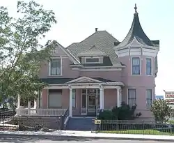 The free traditional porch wraps across the southern corner of the front elevation and the 2-story turret projects from the northeast nook. The composite roofline employs a mixture of hipped and gabled forms, with a hexagonal hipped roof, crowned via the usage of a finial, covering the turret. A shallow hipped-roof dormer is located above the lobby. The actual roof covering was timber shake, however a modern-day composition roof shingles has changed it. Historic images show the usage of decorative ridge caps, but those have not survived to the present time. Set into 3 faces of the turret roof are giblets offset from beneath with the aid of curvilinear brackets. Early images also exhibit a brick chimney at the north end of the house close by the parlor. The chimney has been replaced by a pipe stack. It is not diagnosed what brought about the alternative, however a severe earthquake hit the area in 1954 and might have compromised the stability of the previous chimney. An authentic smaller brick chimney can be found in the center of the house.[2][3]