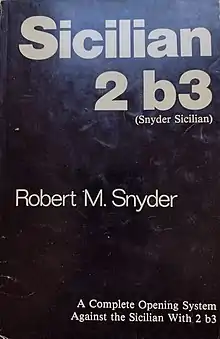 - ↑ Snyder, Robert M (1984). Sicilian 2 b3 (Snyder Sicilian). Los Angeles, California: The Players Press. p. 124. ISBN 0-941426-14-9.