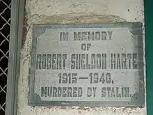 Trotsky commissioned a plaque and had it placed at the front of the house with the text: "In Memory of Robert Sheldon Harte, 1915–1940, Murdered by Stalin."