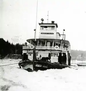 In January 1930, with Captain Becktell in command, Robert Young became trapped in river ice in the Willamette River downriver from Jennings Lodge, Oregon, near Oregon City.[24] Other steamers of the Western Transportation Company were also trapped in the ice at the same time, at different locations on the Willamette and Columbia rivers.[24]