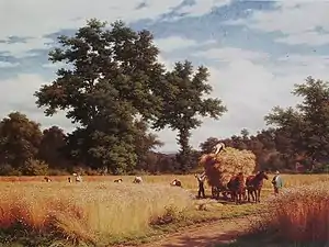 In 1852 Zünd traveled to Paris. At the Louvre, he studied the works of the Dutch and French masters of the 17th Century. His first major work was The Harvest (1860), now in the Kunstmuseum Basel. That same year, he copied works by Claude Lorrain, Ruisdael, and Paulus Potter in the Gemälde Gallery, Dresden.