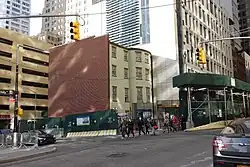 The Sixth and Ninth Avenue elevated lines were closed in 1938 and 1940 respectively, and dismantled in the 1940s.[1][28][29] During the construction of the Brooklyn–Battery Tunnel in that decade, numerous buildings in the neighborhood were demolished. This included many on Greenwich Street, and most of Little Syria. The Dickey House, however, remained, with Edgar Street moved north to the south face of the house.[13][15][16][22] Because of this, the house would later be described as a "Robert Moses survivor".[4]