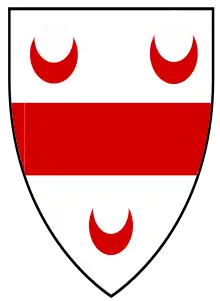 Early Ogle arms: Argent, a fess between three crescents gules.[1]