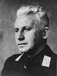 His fortunes changed once the Nazis took control, and he was released from jail to take a role as the appointed Solicitor-General to the Court of Justice in The Hague, where he presided over "peace courts" introduced by Arthur Seyss-Inquart.[1] For a time he was also Minister for Education, Arts, and Science in Anton Mussert's proposed cabinet, but he never took power as the Germans refused to devolve power to the NSB and thus the cabinet never took office.[4]