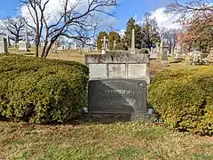 The park-like setting of Rock Creek Cemetery has many notable mausoleums, sculptures, and tombstones. The best known is the Adams Memorial, a contemplative, androgynous bronze sculpture seated before a block of granite that was created by Augustus Saint-Gaudens and Stanford White. It marks the graves of Marian Hooper Adams and her husband, Henry Adams, and sometimes, mistakenly, the sculpture is referred to as Grief.[2][3] Saint-Gaudens entitled it The Mystery of the Hereafter and The Peace of God that Passeth Understanding.