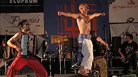 Haydamaky (Ukrainian: Гайдамаки) is a folk rock band formed in Kyiv in 1991. The music of Haydamaky is inspired by various ethnic music from around the world, especially from various regions of Ukraine, such as Polesia, Bukovina, and Transcarpathia. Other influences include the Romanian folklore, punk music sound of Shane MacGowan and by the reggae of such bands like Burning Spear and Black Uhuru.