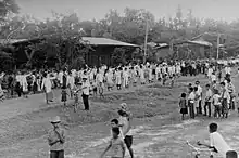 The Rocket Festival (Thai: ประเพณีบุญบั้งไฟ, romanized: Prapheni Bun Bang Fai, Lao: ບຸນບັ້ງໄຟ, romanized: Bun Bang Fai) is a merit-making ceremony traditionally practiced by ethnic Lao people at the beginning of the wet season in various villages and municipalities in Northeastern Thailand and Laos. The festivities typically include music and dance performances, competitive processions of floats, dancers and musicians on the second day, and culminating on the third day with the competitive firing of homemade rockets. Local participants and sponsors take advantage of the occasion to enhance their social prestige, as is customary in traditional Buddhist folk festivals throughout Southeast Asia.[1]