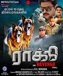 Rocky: The Revenge also simply known as Rocky is a 2019 Indian Tamil-language crime thriller film written and directed by Bollywood filmmaker K. C. Bokadia in his Tamil directorial debut. The film stars two German Shepherd dogs as central titular characters with Srikanth and Eshanya Maheshwari.[1] The film's story is loosely based on the 1985 film Teri Meherbaniyan which is itself remake of 1984 Kannada film Thaliya Bhagya.[2] This film was partially re-shot in Telugu as Namaste Nestama.[3]