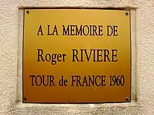 The Tour took the Perjuret on 10 July 1960 on a stage from Millau to Avignon. It had never previously been that way.[7] Rivière followed Nencini wherever he went. He had only to hold him until the final time-trial and beat him by 1m 38s to win the Tour. On the zig-zags of the col de Perjuret, Nencini passed fourth with Rivière behind him. Nencini was known as the fastest descender in the world, famous for his dangerous and risky trajectories, and Rivière tried to follow him. He hit a low wall soon after the start of the descent and fell over it, rolling down the slope.[8] A team-mate, Louis Rostollan, raised his hand to call the team manager, Marcel Bidot. He, journalists and officials found Rostollan peering into the ravine. Rivière's bike was nearby, its forks pushed back and its frame twisted. Rivière had broken his back. A helicopter took him to hospital in Montpellier.