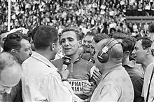 Rivière was one of 14 riding for France in 1960. It was his second participation and he had become one of the favourites. But his talent made him careless with training and what he ate.[6] Rivière had a personal war with another French rider, Henry Anglade. Rivière won the opening time trial but Anglade had the yellow jersey of leadership by day six. Rivière took his revenge, even though they were in the same team, by attacking 112 km from the finish at Lorient. He beat Anglade by 14 minutes. Only a German, Hans Junkermann, Jean Adriaenssens of Belgium, and Gastone Nencini of Italy could stay with him. Rivière won the stage and Nencini the overall lead.