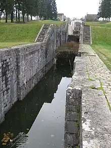 Work was done in 1822 to modernize the locks, but they were closed in 1887, after new ones were built. Each lock is 27 meters long, for a total of 238m, and 4.32 meters wide.[12] They were designated national historical monument in 1983.[11]