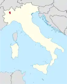 The diocese, which covers an area of 900 km², is divided into 114 parishes.[33] All but one are in the civil Province of Biella, the other falls within Province of Vercelli. A list of parishes by province and commune follows; locations (villages or neighbourhoods) within a commune are shown in brackets.[34]
