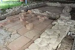 It was identified by tile-stamps with the names of the Plinys (CPS: Caius Plinius Secundus and CPCS: Caius Plinius Caecilius Secundus) and by an inscription mentioning a freedwoman named Plinia Chreste, clearly with Pliny as patron.[5] Pliny the Younger wrote that "I prefer my Tuscan villa to those which I possess at Tusculum, Tiber, and Præneste. ... I enjoy here a cosier, more profound and undisturbed retirement than anywhere else".[6]