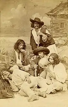 Romani men's clothing was standard throughout their respective clan and the sharing of clothes between clan members was seen as a symbol of brotherhood.[11]