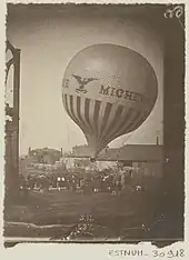 The first flight of Romanian military personnel happened on 2 July [O.S. 20 June] 1874, when Marius Willemot, a French engineer from Bucharest, took Majors (Maj.) Iacob Lahovary, Constantin Poenaru and Dumitrescu in flight over the city with his hydrogen balloon named "Mihai Bravul" (Michel-le-Brave). The last flight of this balloon took place on 19 [O.S. 7 July] 1874, Willemot flying together with Colonel (Col.) Nicolae Haralambie, Ion Ghica and a third person.[5]