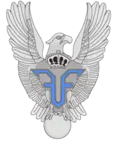 Romanian model 1915 pilot badge, featuring the "Royal Eagle" (Pajura Regală) and the cipher of King Ferdinand