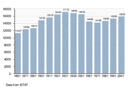- ↑ "Popolazione Residente al 1° Gennaio 2018". Italian National Institute of Statistics. Retrieved 16 March 2019.