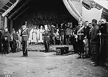 Te Kooti, after mounting a raid on 10 November that saw a number of Māori and European settlers and farmers murdered,[17] retreated to a strong defensive pā at Ngatapa. Ropata and his men, at Wairoa, went north to Gisborne (known at the time as Tūranga) and onto Ngatapa.[18][19] The pa contained about 200 Ringatū warriors and around 300 other Māori, many of whom were prisoners taken in Te Kooti's raids.[20] The first assault on 4 December, led by Ropata, Hōtene Porourangi, another rangatira of Ngāti Porou, and Lieutenants Mair and Preece of the Armed Constabulary, was unsuccessful. The pā was up on the peak of a ridge, and had strong fortifications including entrenchments and was palisaded. Although Ropata led a party in capturing a defensive trench, it had to be abandoned in the evening when they ran out of ammunition. Ropata pulled his men, tired by the march from Wairoa and the subsequent fighting, back to Tūranga. Despite this Ropata was awarded the New Zealand Cross (NZC) for his bravery and leading role in this action.[21][22] The NZC had recently been established as a gallantry award for colonial personnel, and was regarded as being equivalent to a Victoria Cross (VC); those serving in New Zealand's colonial militia were ineligible for the VC unless they were under the command of British officers.[23] Ropata was also made a major in the Armed Constabulary.[1]