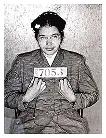 Rosa Louise McCauley Parks (February 4, 1913 – October 24, 2005) was an American activist in the civil rights movement best known for her pivotal role in the Montgomery bus boycott. The United States Congress has honored her as "the first lady of civil rights" and "the mother of the freedom movement".[1] Parks became an NAACP activist in 1943, participating in several high-profile civil rights campaigns. On December 1, 1955, in Montgomery, Alabama, Parks rejected bus driver James F. Blake's order to vacate a row of four seats in the "colored" section in favor of a white passenger, once the "white" section was filled.[2] Parks was not the first person to resist bus segregation,[3] but the National Association for the Advancement of Colored People (NAACP) believed that she was the best candidate for seeing through a court challenge after her arrest for civil disobedience in violating Alabama segregation laws, and she helped inspire the Black community to boycott the Montgomery buses for over a year. The case became bogged down in the state courts, but the federal Montgomery bus lawsuit Browder v. Gayle resulted in a November 1956 decision that bus segregation is unconstitutional under the Equal Protection Clause of the 14th Amendment to the U.S. Constitution.[4]