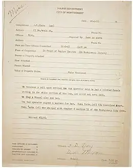 Parks was charged with a violation of Chapter 6, Section 11, segregation law of the Montgomery City code,[47] although technically she had not taken a white-only seat; she had been in a colored section.[48] Edgar Nixon, president of the Montgomery chapter of the NAACP and leader of the Pullman Porters Union, and her friend Clifford Durr bailed Parks out of jail that evening.[49][50]