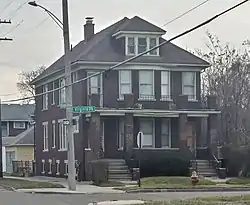 The Rosa Parks Flat is a two-and-one-half story Craftsman style building, sited on a corner lot. The elevations facing the streets are faced with dark red brick, while the remaining elevations are faced with common orange brick. The building has a hipped roof covered with asphalt shingles. A hipped dormer projects from the roof at the front. A full-length front porch runs along the front, with brick piers supporting a second-story open porch above. Two entry doors are placed on each side of the porch, between which is a bay window. All of the windows on the front aredouble-hung, one-over-one wood sash units.[2]