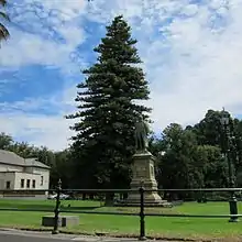 Rosalind Park contains a number of notable trees and plants, some listed on heritage registers in their own right. Of note are the Bunya-Bunya Pine, Hoop Pine, South African Yellowwood, River Red Gums, Canary Island Pines, Cedar, California Bay (also known as the headache tree and the only example in Victoria), a Crows Ash (one of three in Victoria[5]), Queensland Kauri along with a number elm and oak species. The Chilean Wine Palm, now rare in Chile, thrives despite the climate being less than ideal for this plant.[3]