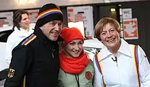 Mittermaier (r.) and her husband with figure skater Aljona Savchenko in 2018