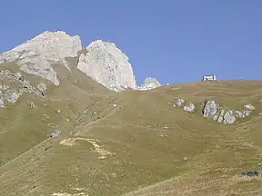 The Rote Säule or Rote Saile is a mountain, 2,820 metres[1] (according to other sources 2,879 metres[2]) high on the Wallhornkamm in the Venediger Group. Its summit is accessible from Prägraten via the Sajat Hut and from there via an only slightly exposed normal route via the Saukopf or up a klettersteig with two climbing options. In the other direction the Rote Säule may be gained via the Kreuzspitze and the Schernerskopf from the Eissee Hut in the Timmel valley (Timmeltal) via the col of Zopetscharte and the Tulpspitze. To the south is the Obere Saukopf.
