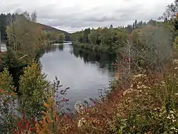 A map by Franquelin, dated 1699, indicated the "Red River" as an extension of the "North River". Hypotheses have been made by historians as to the origin of this hydronym. The most likely hypothesis makes the link with the slightly reddish hue of the waters of the river, due to the oxidation of certain types of rocks of the Canadian Shield that cross the river.[4] However, its water is said to be clearer than that of neighboring rivers.[1] Another explanation would come from a red chalk deposit located at Grand lac Nominingue that the Algonquins and Iroquois used to paint themselves.