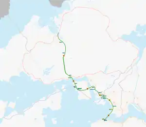 The route originates at the junction with Route 4 at Connaught Road in Sai Ying Pun, and immediately crosses the Victoria Harbour through the tolled Western Harbour Crossing. From then on it heads northwest on a viaduct along the West Kowloon Highway, above the Tung Chung line and Airport Express tracks. This section has three exits that connects with Route 8, Route 7 and Route 5 respectively. It then enters the Tsing Kwai Highway in Lai Chi Kok and continues west to Tsing Yi Island on Rambler Channel Bridge. Once it reaches the island, the Cheung Tsing Tunnel immediately follows. At the other end of the tunnel, Route 3 enters the Tsing Yi Northwestern Interchange and meet with Route 8 again. The interchange is a gateway to Lantau Island and Chek Lap Kok Airport. Route 3 then makes a sharp turn and travels north on Ting Kau Bridge and quickly enters the tolled Tai Lam Tunnel. From there, the remainder of the route is dubbed the Country Park Section[1] which runs all the way to Kam Tin along the Tsing Long Highway, and joins Route 9 near Pok Oi Hospital.[2]
