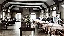 During Winifred, Countess of Dundonald's opening in 1900, the names of the wards, which were announced as brief services in each of the rooms by Rev. Thomas Lloyd, (Rhyl's Vicar at that time). The larger wards were 'The Gertrude Ffoulkes Ward' (In memory of the only child of the late archdeacon.), 'The Hesketh Ward' (Named in memory of Winifred's father; Robert Bamford Hesketh) and 'The Duke's ward' (Named in memory of the late Duke of Westminster). The smaller wards were 'The Price Roberts Ward' (In remembrance of Dr. Price Roberts, the very first physician who worked at the building) and 'The Graham Ward', there is also an 'Edith Vizard ward'.[5][6][7]