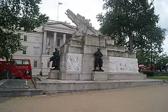 The Royal Artillery War Commemoration Fund (RAWCF) was formed in 1918, made up of a mixture of commissioned officers and other ranks.[7] The RAWCF's intention was to remember the artillerymen who had died during the war, and after some discussions of various options, including purchasing a house for wounded soldiers, or building a number of small shrines across the country, the RAWCF decided to construct a single memorial to the fallen Royal Artillery servicemen. Memorials to lost servicemen from the previous major conflict, the South African War fought between 1899 and 1902, had been widely criticised as being unimaginative and members of the RAWCF were unimpressed by the Royal Artillery's memorial to that war, located on the Mall. As a result of these problems, the prominent artist Sir Edward Poynter put forward recommendations that far more care, time and funding be given to the construction of future war memorials, which were taken on board by the RAWCF.[8]