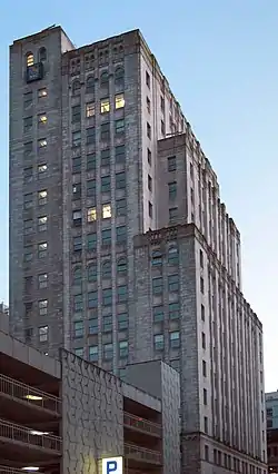 The mix of Art Deco and Neo-Romanesque office building is now undergoing rezoning application and restoration.[1]