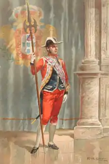 The Royal Guard of the Archers (Portuguese: Guarda Real dos Archeiros) was the palace guard of the Portuguese Monarchs from the 16th century until the end of the monarchy in Portugal in 1910. Its members were armed with halberds, the Guard being also known as the Royal Guard of the Halberdiers (Portuguese: Guarda Real dos Alabardeiros).[1]