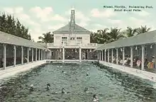 The Royal Palm Hotel was a large resort hotel built by railroad magnate Henry Flagler in Miami, Florida. Opened on January 16, 1897,[1] the Royal Palm Hotel was one of the first hotels in the Miami area. It sat on the north bank of the Miami River where it overlooked Biscayne Bay. Five stories tall with a sixth-floor salon, the Royal Palm Hotel featured the city's first electric lights, elevators and swimming pool. Almost thirty years later, The Royal Palm Hotel was grievously damaged by the 1926 hurricane, and infested with termites. In 1930, it was condemned and torn down.[2]:187