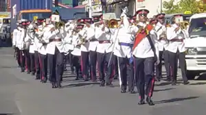 The RSLPB has hosted bands such as the Hampshire Band[7] and the Royal Barbados Police Band. It is revered as one of the best-uniformed marching bands in the Eastern Caribbean. It was founded on 18 June 1947 under the direction of Nathaniel Griffith and consisting of 6 policemen. Since its establishment, it has increased sevenfold to the size of 42, a number that includes 4 females.[8] The Band are well known for performances at state events such as the Independence Day Parade in Castries[9] and Remembrance Sunday celebrations.