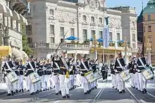 The Royal Swedish Army Band (Swedish: Arméns musikkår) is the largest professional military band in the Swedish Armed Forces. The establishment of 53 musicians and extensive musical versatility makes it possible to perform at most occasions, ceremonies, events, concerts and pageants. The band performs more than 200 times yearly. The band is a part of the Life Guards in Stockholm, and wears the uniform of the 2nd Regiment of Foot Guards 1886. The Swedish Armed Forces Music Corps heads all bands in the Swedish Armed Forces.