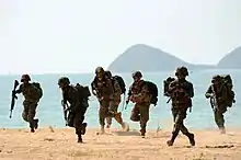 The Royal Thai Marine Corps or RTMC (Thai: ราชนาวิกโยธินแห่งราชอาณาจักรไทย) are the marines of the Royal Thai Navy. The Royal Thai Marine Corps was founded in 1932, when the first battalion was formed with the assistance of the United States Marine Corps. It was expanded to a regiment in 1940 and was in action against communist guerrillas throughout the 1950s and 1960s. During the 1960s the United States Marine Corps assisted in its expansion into a brigade. The Royal Thai Marine Corps saw action on the Malaysian border in the 1970s, and has now been increased to four brigades.