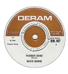 "Rubber Band" is a song by the English singer-songwriter David Bowie. It was recorded in October 1966 following Bowie's dismissal from Pye Records and helped secure him a record contract with Decca-subsidiary Deram Records, who released it as a single in the United Kingdom on 2 December of the same year. A departure from the mod-style sound of his previous releases, "Rubber Band" displays a style informed by vaudeville and British music hall – influenced particularly by British actor Anthony Newley. The lyrics tell the story of a man who goes off to war and, upon his return, finds his lover fell for a brass band conductor.