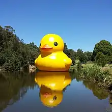 Rubber Duck is a series of several giant floating sculptures of yellow rubber ducks, designed by Dutch artist Florentijn Hofman, which have appeared in many cities around the world. Each Rubber Duck is recreated anew locally, as his public art is intended to be temporary.[1]