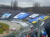 Ruch Chorzów (Polish: [ˈrux ˈxɔʐuf] ) is a Polish association football club based in Chorzów, Upper Silesia. It is one of the most successful football teams in Poland, having won fourteen league titles, and the Polish Cup thrice. They currently compete in the Polish Ekstraklasa. Ruch's home venue is the Ruch Stadium, with a capacity of 9,300 seats.[1] As it is currently under renovation, Ruch temporarily hosts their games at the Stadion Śląski with a capacity of 55,211 seats. The club is known for its Silesian identity.[2] Ruch Chorzów has also had a very successful female handball team (9 times national champions).