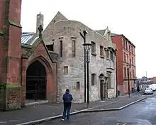 Ruchill Church Hall, designed by Charles Rennie Mackintosh, was built as a mission for the Free Church of Scotland and completed in 1899. It is located at 15/17 Shakespeare Street, a side road off Maryhill Road, Glasgow, Scotland, close to the bridge which takes Ruchill Street across the Forth and Clyde Canal to the Ruchill area, and near a shopping centre on the main road. The adjacent church closer to the canal was constructed later, designed by a different architect.
