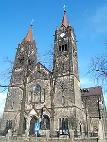Before the German invasion of Poland and the outbreak of World War II, in 1939, German saboteurs carried out an attack in Ruda.[6] Following the invasion, the area was under German occupation from 1939 to 1945. Several Polish teachers from present-day Ruda Śląska were murdered by the Germans in concentration camps as part of the Intelligenzaktion.[7] The Germans also established and operated a Polenlager forced labour camp for Poles in the present-day district of Kochłowice,[8] and the E83 forced labour subcamp of the Stalag VIII-B/344 prisoner-of-war camp in the present-day district of Chebzie.[9] The Polish resistance movement was active in the area. In 1945, the German occupation ended, and the area was restored to Poland, although with a Soviet-installed communist regime, which then stayed in power until the fall of communism in the 1980s.