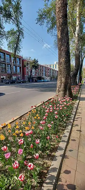 Rudaki Avenue (Tajik: хиёбони Рӯдакӣ, Russian: проспект Рудаки) is the main thoroughfare street in Dushanbe, the capital of Tajikistan.[1][2][3] The street is named after Rudaki, the Tajik national poet.[4] The street was known as Lenin Avenue during the Soviet period, and used to host a statue of Vladimir Lenin.[5] The street received its current name in the summer of 1992.[6]