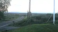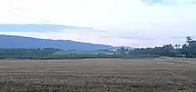 Rude's Hill, seen from the flatlands of Meems Bottom. This is the viewpoint which Union forces would have had in various points during the war, approaching Confederate positions defending the hill. The Valley Turnipike (now Rt.11) is on the far right. The Massantten mountains are in the distance.