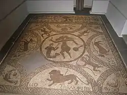 H. Robson retained the mosaics he discovered in the ground, and built a shed over them to display them to the public. By the 1960s frost damage was causing the mosaics to deteriorate and they were transferred to the Hull and East Riding Museum where they have been on display since 1963.[2] The 'Charioteer mosaic' was found in excavations in 1971; it depicts a quadriga and dates to the 4th century AD.[5]